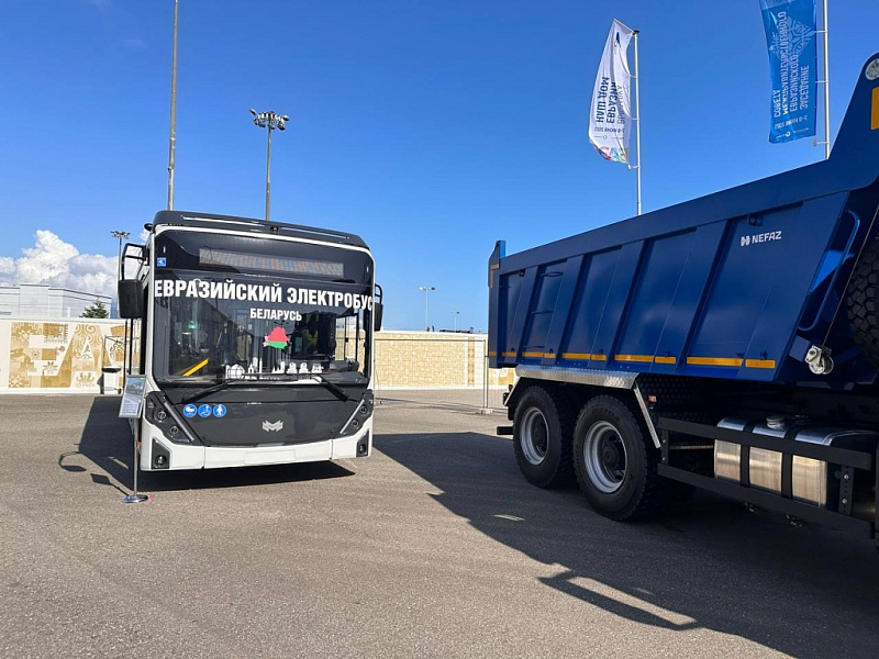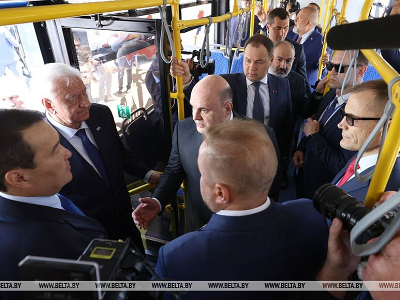 Премьер-министр Беларуси Роман Головченко и главы делегаций, участвующих в заседаниях Совета глав правительств СНГ и Евразийского межправительственного совета, 8 июня 2023 г. посетили международную выставку «Евразия - наш дом», на которой представлены белорусские стенды в области промышленности, науки и образования, финансов, энергетики, цифровизации и цифрового развития, медицины и здравоохранения, туризма и спорта,  продовольственной безопасности. Отдельное внимание было уделено кооперационному проекту «Евразийский электробус» от «Белкоммунмаш». Главная цель проекта – разработка городского автобуса с электрической силовой установкой, идеально подходящего для эксплуатации в странах ЕАЭС. При этом все критические компоненты в нем должны быть сделаны в странах Союза. Официальная делегация ознакомилась и с сельхозмашиностроением ОАО «Гомсельмаш».